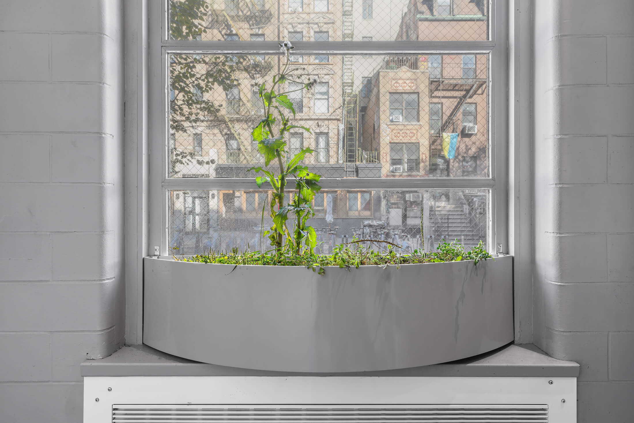 Unfolding and growing over the course of two years, the artworks in the project are on long-term view in the non-gallery spaces of SI. In the stairways, hallways, roof, and other interstitial spaces, artists have contributed to the daily life, maintenance and functioning of the building with artworks that take shape through compost, plants, wall paint, public space and more. These include: Jenna Sutela’s earth battery-powered oracle; Vivian Suter’s weather-exposed mural; Hendl Helen Mirra’s chance-determined background painting; Li Tavor’s sound and sculpture installation that draws parallels between infrastructural systems of electrical current maintenance and regulatory social systems of gender identification; Dionne Lee’s performative navigation of the local landscape; Uriel Orlow’s planters filled with weeds from the surrounding neighborhood; Christian Nyampeta’s hosting structure that functions simultaneously as a floor sculpture, stage and outdoor seating furniture; a newly composed score as a large-scale mural by Raven Chacon; and Lee Mary Manning’s photographs merging private and public, natural and urban spaces.